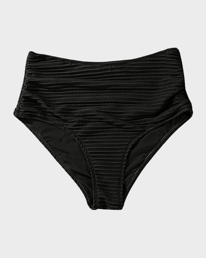 • Tummy-Smoothing High Waist: Ruching detail gently shapes the waist, offering moderate coverage and a confident silhouette.