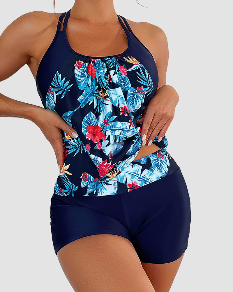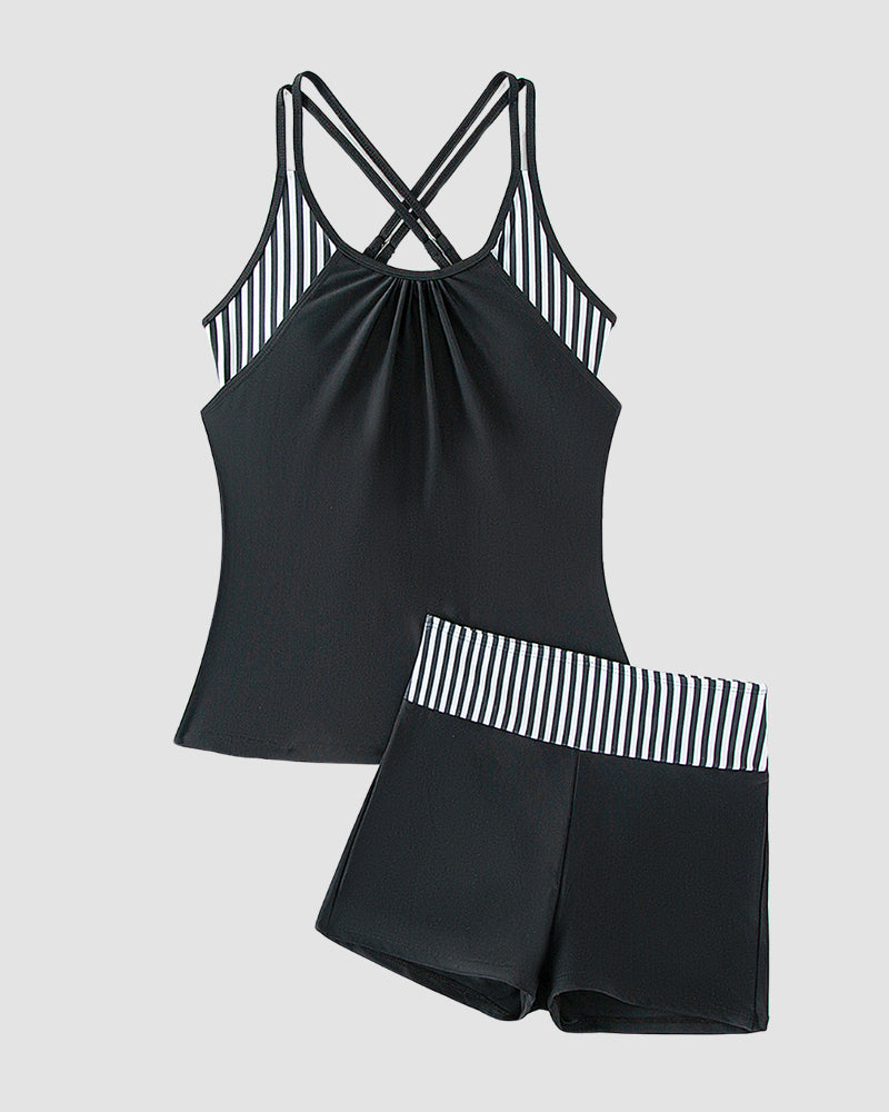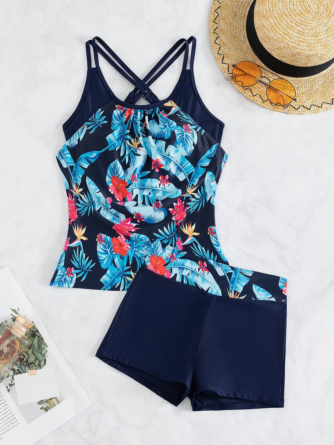 This 2-piece blouson bathing suit has a lined-up swim tank top and high-waisted boyshorts, which offer full coverage and a good tummy control effect.